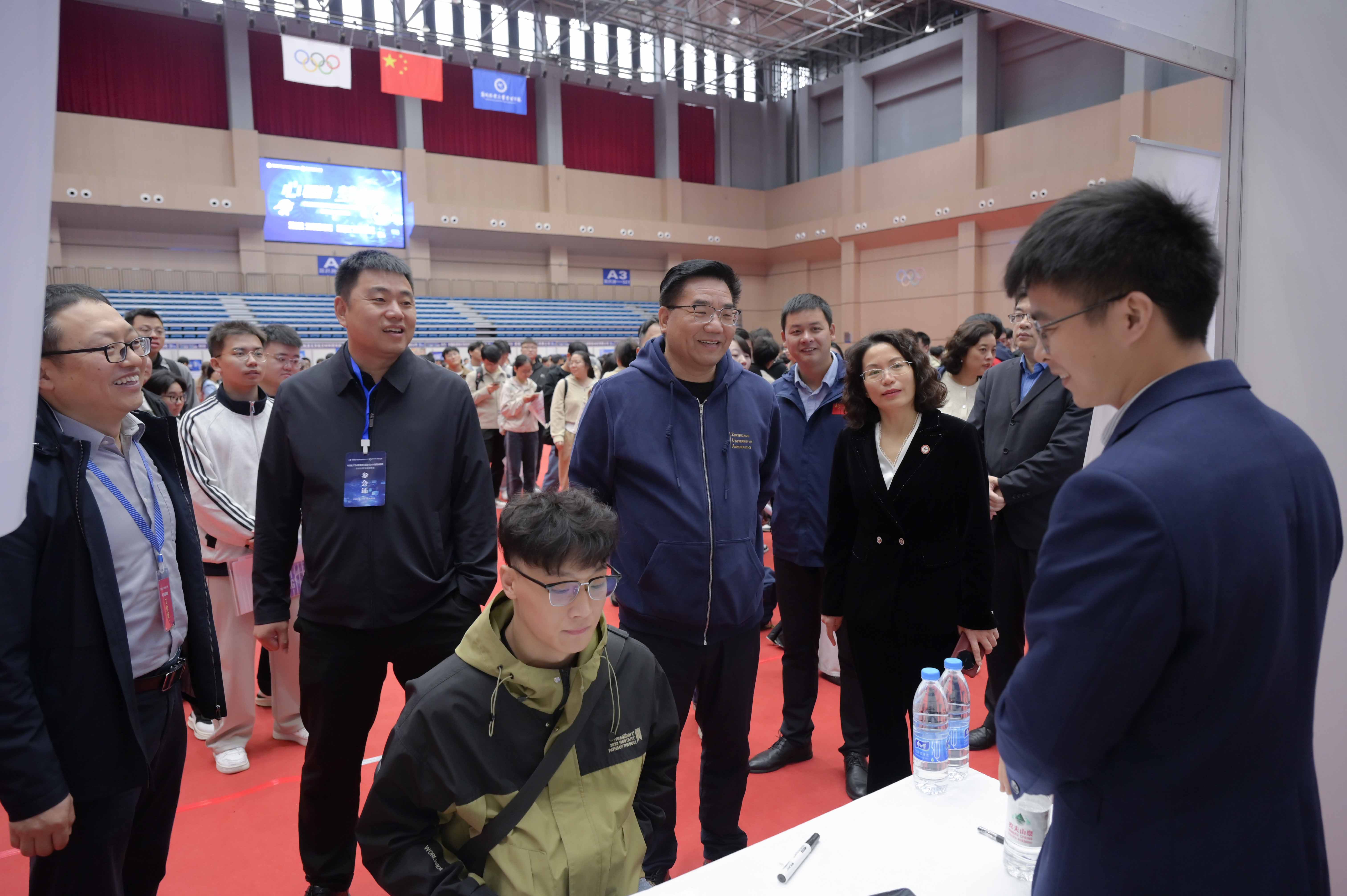 中国航发2026届校园招聘会参会企业人力资源等部门负责人,校党委办公室、党委宣传部、党委学生工作部、招生就业处、航空发动机学院、体育部相关负责人参加有关活动,各学院相关负责人到现场开展就业指导服务工作。